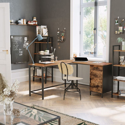 Μεγάλο Γωνιακό Γραφείο Υπολογιστή Με Ντουλάπι Τραπέζι Γραφείου Βιομηχανικό Vintage Καφέ Μαύρο LW-D74X
