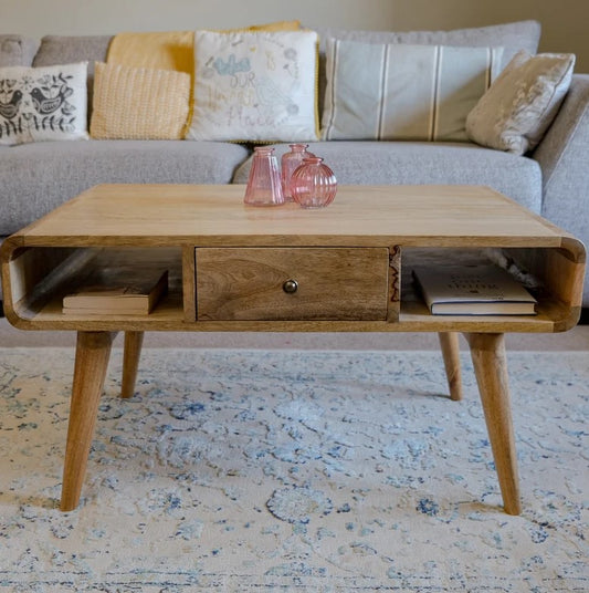 Τραπεζάκι Σαλονιού Vintage Σκανδιναβικά με συρτάρια αποθήκευσης Μοντέρνο από μασίφ ξύλο IN713