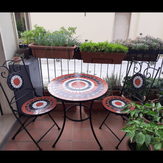 Έπιπλα Κήπου Βεράντας Σετ 3 τεμ. Vintage Τραπεζάκι Καρέκλες Μεταλλικό με Πλακάκι Bistro 1271773