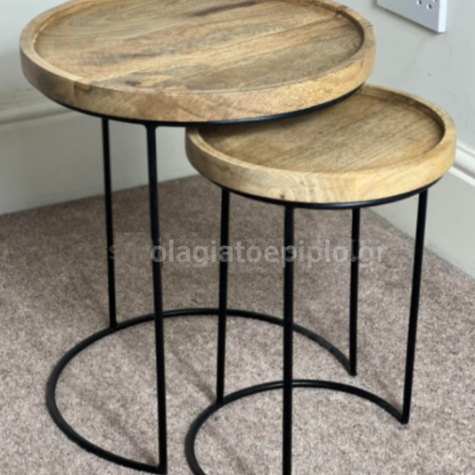 Βοηθητικά Ξύλινα Τραπεζάκια Σαλονιού Σετ 2 τμχ Industrial Μεταλλικά Τραπέζια Καναπέ 1321705