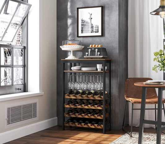 Έπιπλο Μπαρ Θήκη Μπουκαλιών Ποτηριών Κρασιού Όρθια Σχάρα Κουζίνας Τραπεζαρίας Industrial Καφέ KW-R028B01