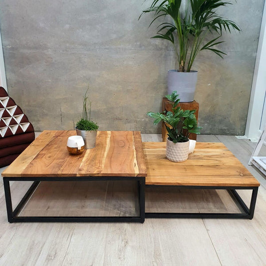 Τραπεζάκια Σαλονιού Σετ 2 τμχ Βοηθητικά Τραπέζια Καφέ από Μασίφ Ξύλο Βιομηχανικό Στιλ 1320391