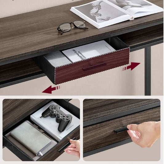 Στενό Τραπέζι Μπαρ με Συρτάρι με Πολύμπριζο Θύρες USB 40 x 120 x 104,6 εκ Καφέ και Μαύρο LB-T029K02