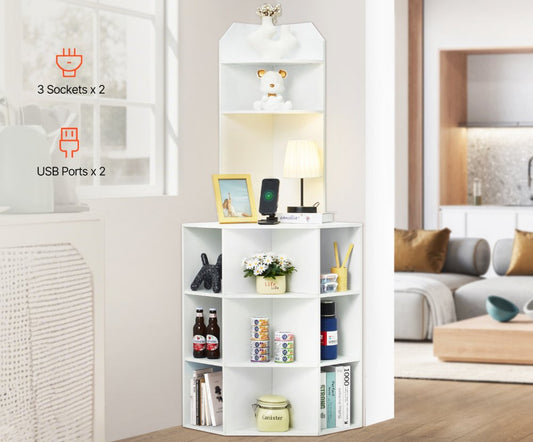 Βιβλιοθήκη με LED Φωτισμό 178 εκ Ύψος Ραφιέρα Βιτρίνα Μπεζ Λευκό 6 Ράφια LL-S120LL01
