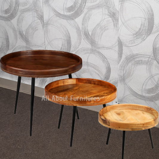 Ρουστίκ Σετ από 3 Ξύλινα Βοηθητικά Τραπεζάκια Στρόγγυλα με Μεταλλικά Πόδια 1246284
