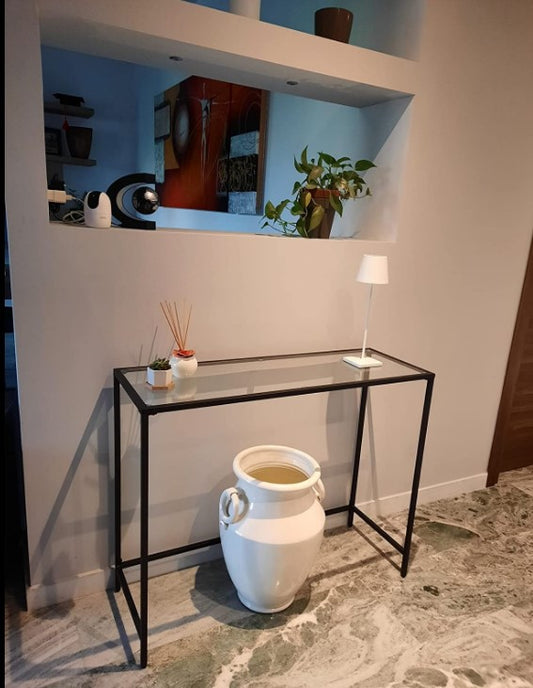 Μοντέρνα Κονσόλα Τραπέζι Εισόδου Μαύρο Μεταλλικό Γυάλινο Έπιπλο Διαδρόμου Σαλονιού LG-T026B01