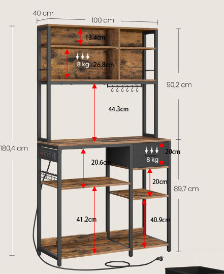 Ράφι Κουζίνας Βοηθητικό με Πολύμπριζο Νησίδα Κουζίνας Μικροκυμάτων Συρτάρι Ραφιέρα 100 εκ KK-S027K02