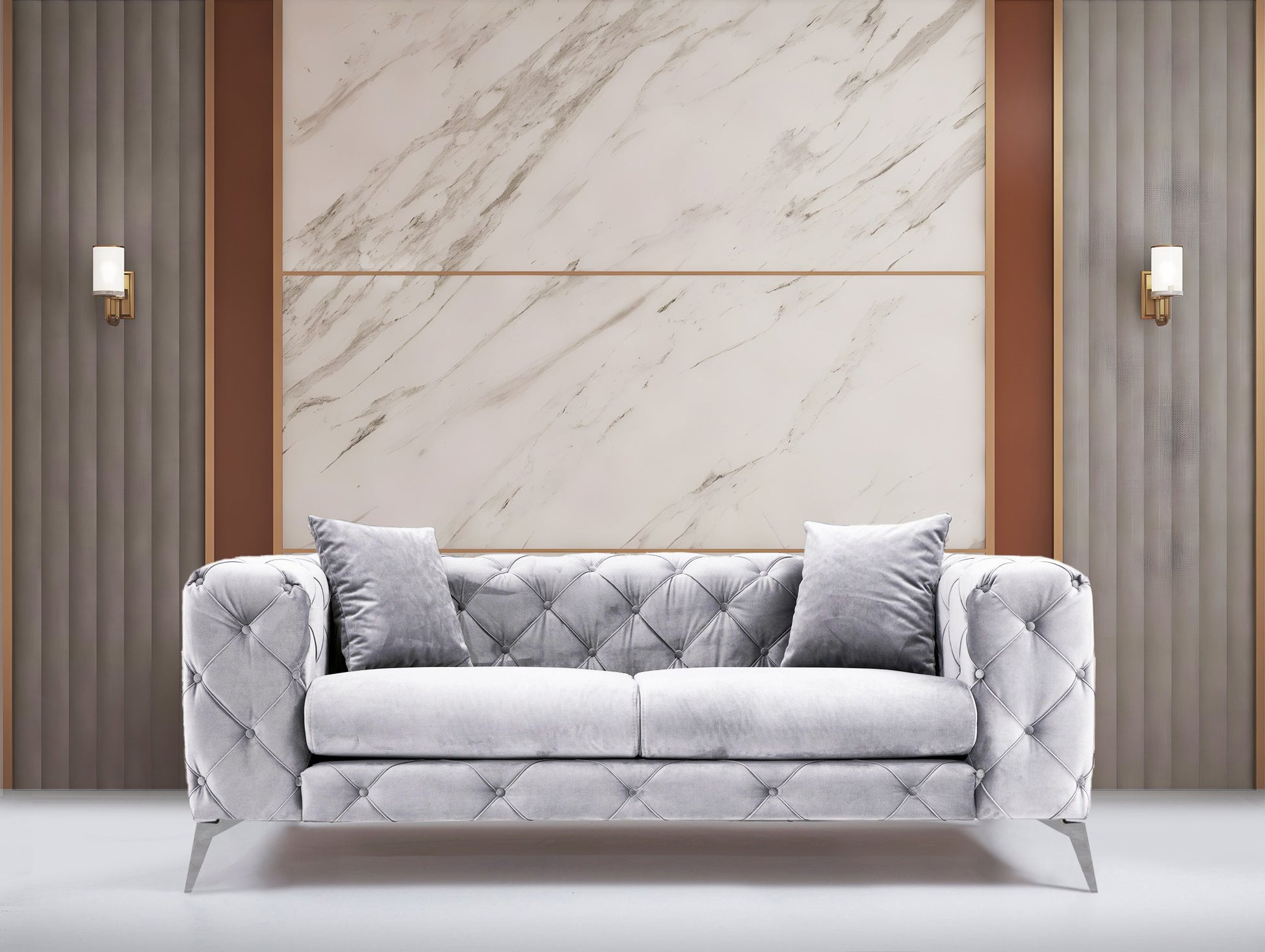 Σχεδιασμός που ενισχύει τον χώρο: Με κομψά μεταλλικά πόδια χρωμίου και απαλό ανοιχτό γκρι χρώμα, αυτός ο καναπές συμπληρώνει αβίαστα τους μοντέρνους ή λαμπερούς εσωτερικούς χώρους. Το μικρό του μέγεθος, με διαστάσεις πλάτους 197 cm, ύψους 73 cm και βάθους 90 cm, το καθιστά ιδανικό για μικρότερους χώρους χωρίς συμβιβασμούς στο στυλ ή την άνεση.