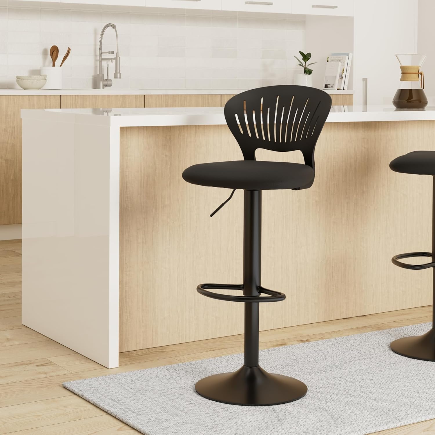 Σκαμπό για Πάσο Κουζίνας Σετ 2 τμχ Ρυθμιζόμενο Ύψος 59-81 εκ Σκαμπό Τραπεζαρίας Μπαρ με Πλάτη Κουζίνα Κάθισμα μαύρο LJ-B04BK