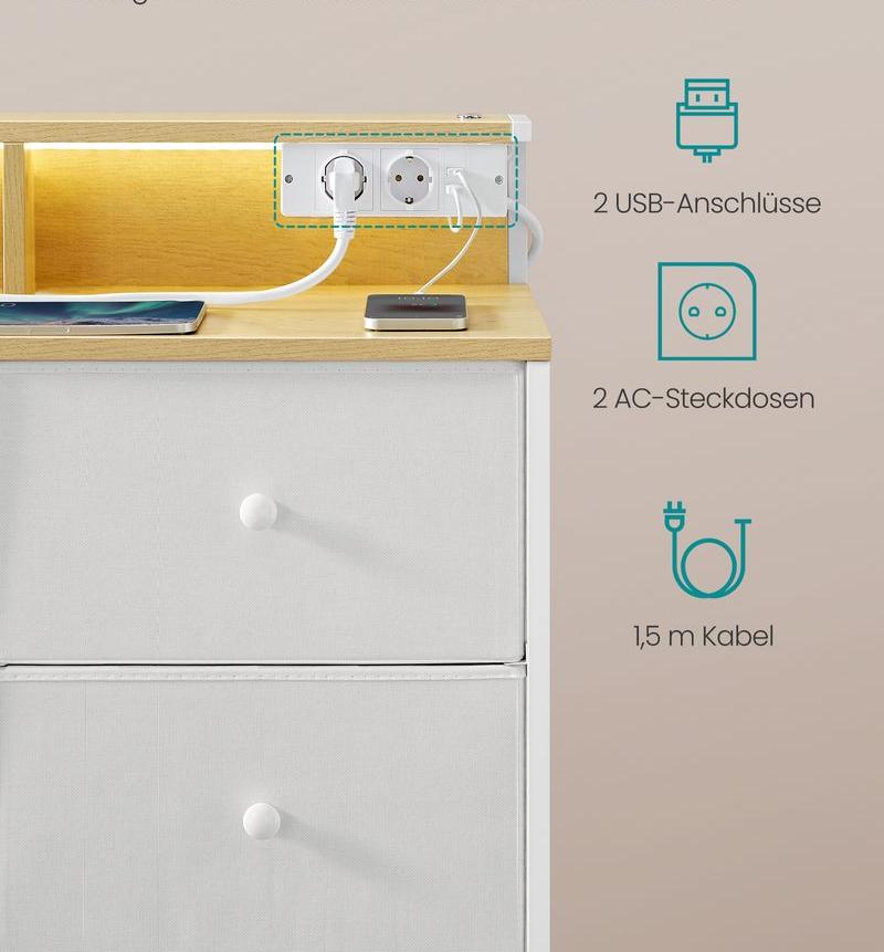 Συρταριέρα Κομότα Υπνοδωματίου Κονσόλα Εισόδου με Φωτισμό Πρίζες και usb LT-S519W02