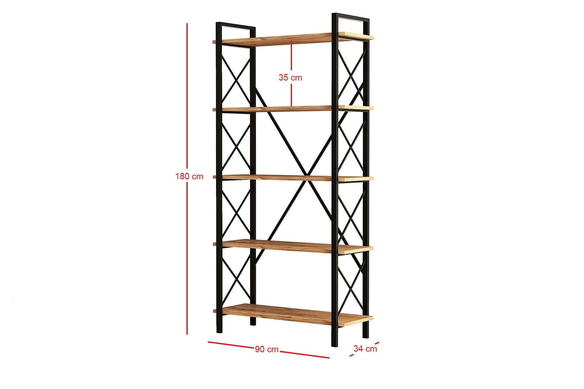Διαστάσεις βιβλιοθήκης: Πλάτος: 100 cm, Ύψος: 180 cm, Βάθος: 34 cm