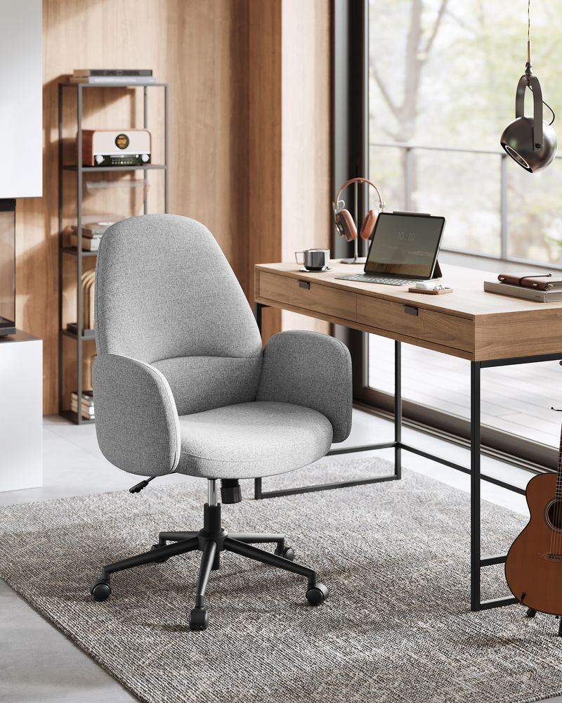 Η καρέκλα γραφείου που καλύπτεται με ύφασμα από βαμβάκι-λινό είναι άνετη στο δέρμα και αναπνέει, ώστε να παραμένετε δροσεροί ακόμα και όταν κάθεστε για ώρες.