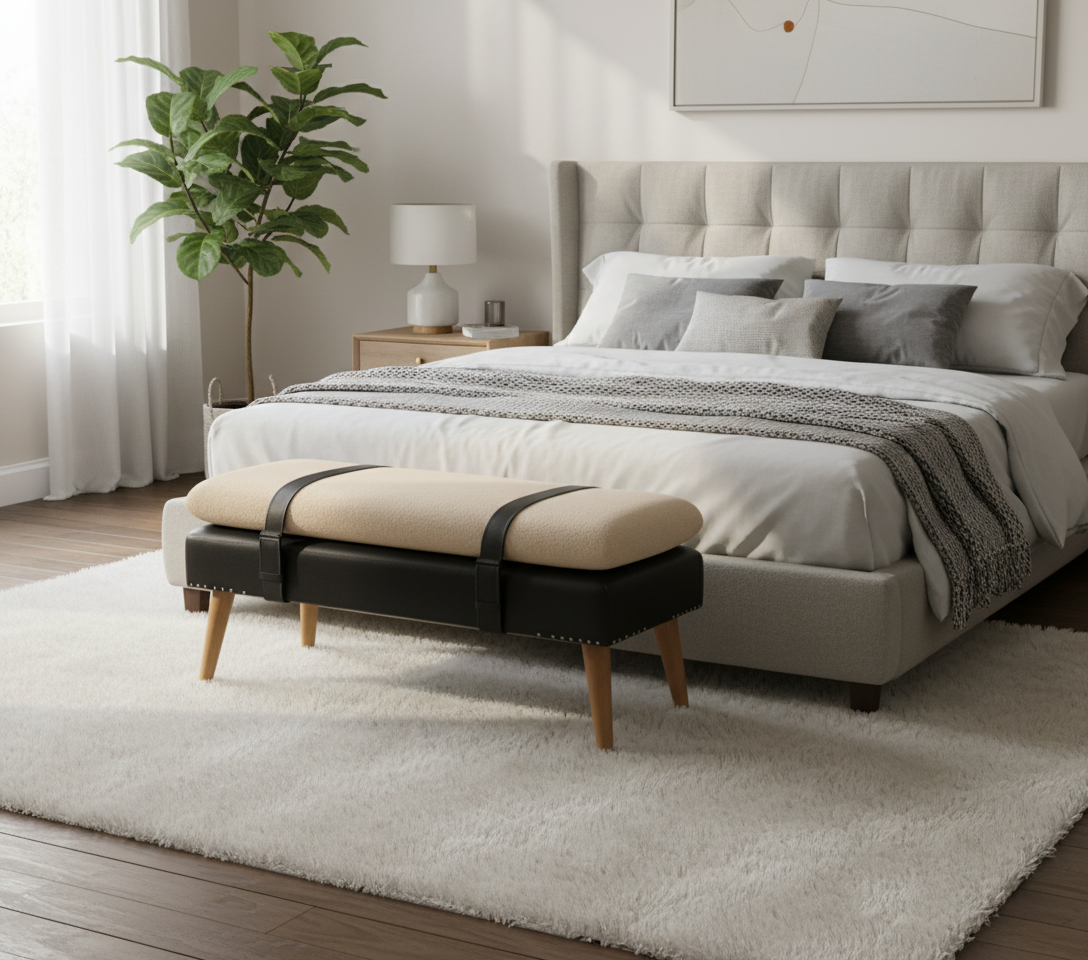 Ανακαλύψτε την κομψότητα που επαναπροσδιορίζεται με το σχολαστικά κατασκευασμένο ταπετσαρισμένο παγκάκι μας, όπου οι φυσικές υφές συναντούν τα υλικά υψηλής ποιότητας. Αυτό το εξαιρετικό κομμάτι είναι χειροποίητο με 100% βαμβάκι και φυσικό νήμα, εξασφαλίζοντας μια πολυτελή αίσθηση και αφή. Με έμφαση στο δέρμα βουβαλιού, αποπνέει κομψότητα και διαχρονική γοητεία, καθιστώντας το ένα εκπληκτικό κεντρικό κομμάτι για κάθε μοντέρνο ή κλασικό εσωτερικό χώρο.