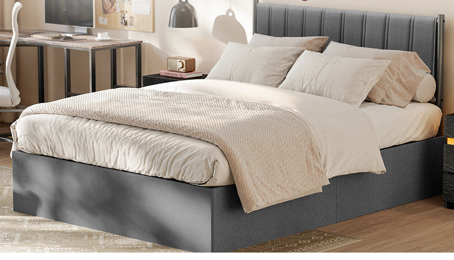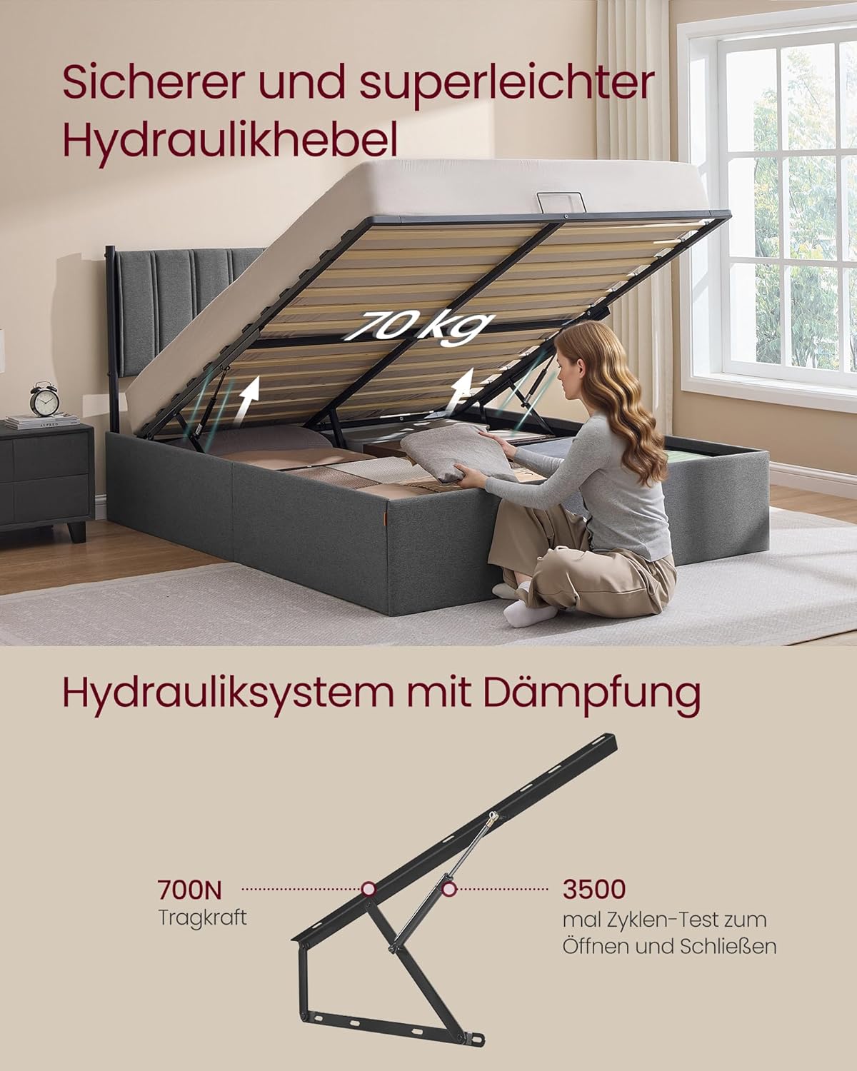 - Σταθερό και ασφαλές: Το υδραυλικό σύστημα με απόσβεση εξασφαλίζει σταθερή ανύψωση και κάθοδο του σκελετού του κρεβατιού. Μετά τη συναρμολόγηση, τοποθετήστε το στρώμα μέσα και πιέστε το απαλά για να ελέγξετε τη λειτουργία του.