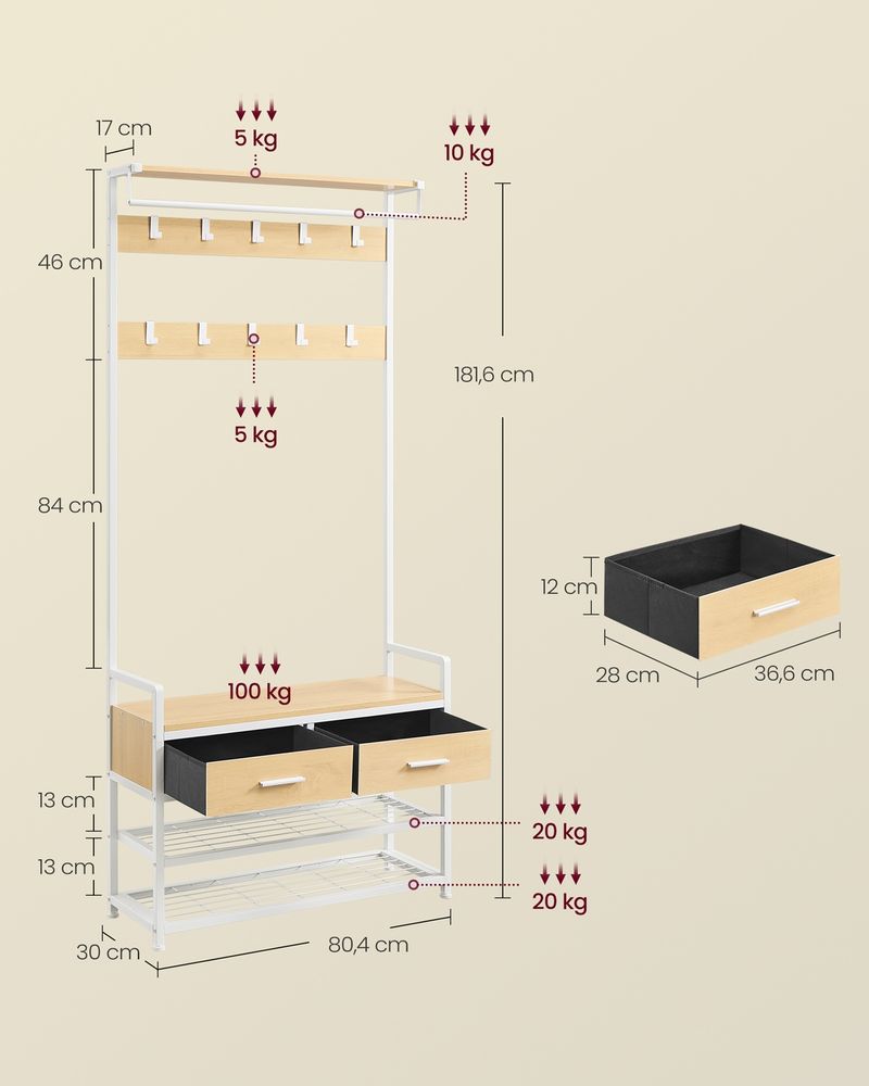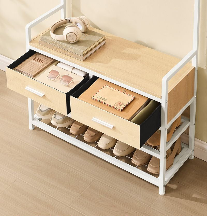Έπιπλο Εισόδου Βάση για Παλτό Κρεμάστρα Ρούχων Καλόγερος Ντουλάπα Παπουτσοθήκη για διάδρομο Λευκό-Δρυς
