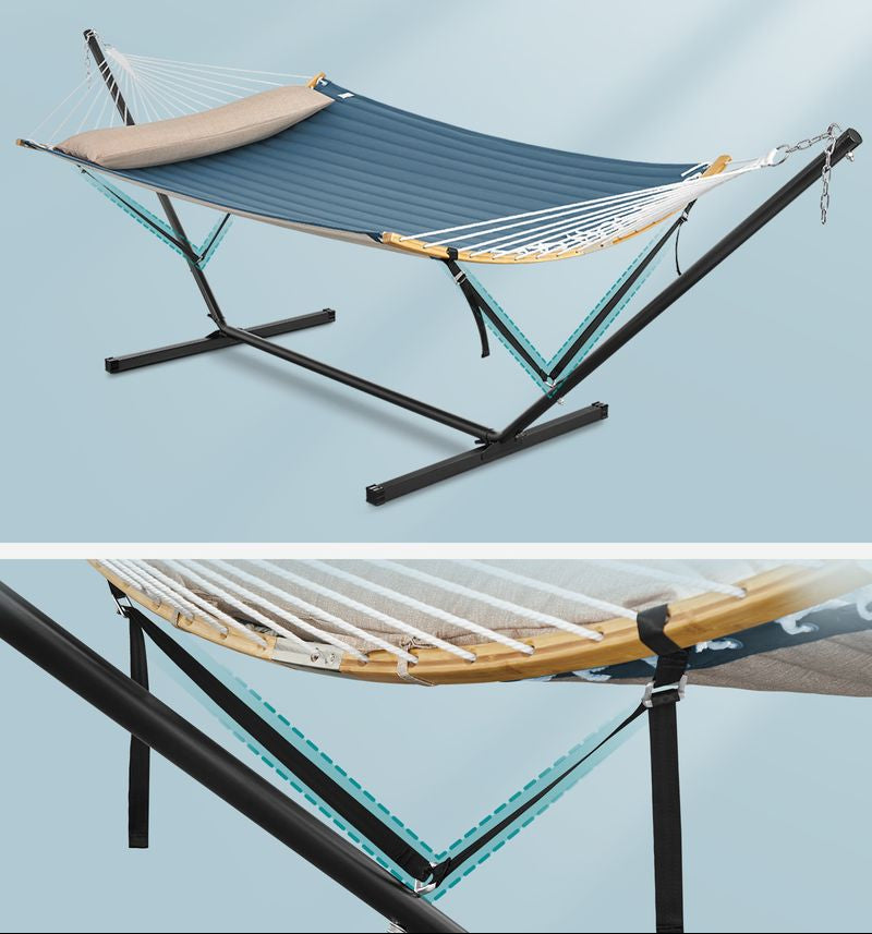 Αιώρα Κήπου με Μεταλλική Βάση έως 200kg, Ρυθμιζόμενο Ύψος, Μαξιλάρι & Τσάντα Μεταφοράς για 2 Άτομα GHS-B35002Q01