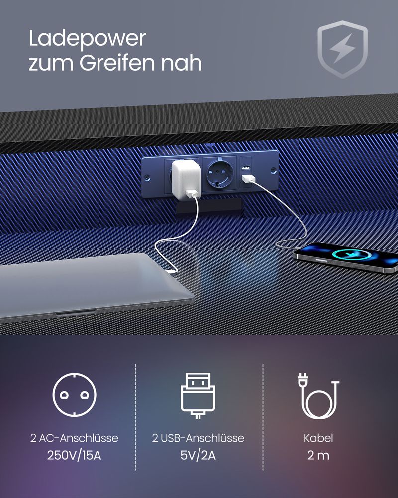 Δεν είναι μόνο γραφείο, αλλά και υπολογιστής ή τραπέζι εργασίας. Σε μαύρο χρώμα, με ενσωματωμένες πρίζες και φωτισμό LED, αυτό το κομψό και λειτουργικό τραπέζι ταιριάζει τέλεια σε κάθε δωμάτιο.