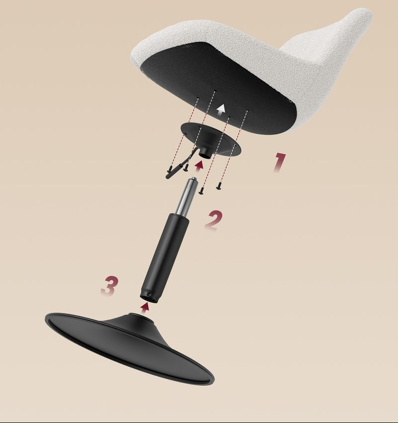 • Εύκολη συναρμολόγηση, άμεση άνεση: Το σκαμπό συνοδεύεται από σαφείς οδηγίες. Απλώς συνδέστε το ελατήριο αερίου στη βάση και το κάθισμα, σφίξτε τις τέσσερις βίδες - και μπορείτε να απολαύσετε αμέσως την άνεση του καθίσματος.