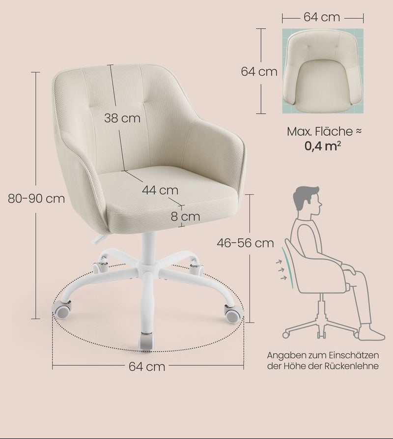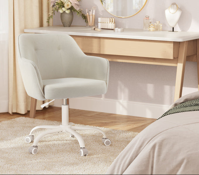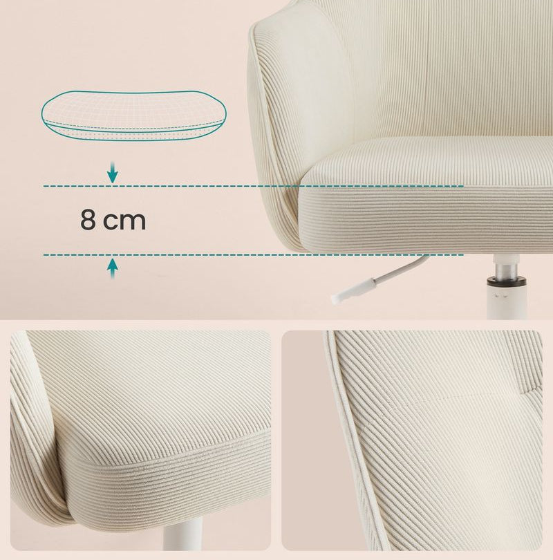 - Μαλακή επιφάνεια: Η κοτλέ επιφάνεια της καρέκλας γραφείου είναι φιλική προς το δέρμα και προσφέρει μια άνετη εμπειρία καθίσματος.