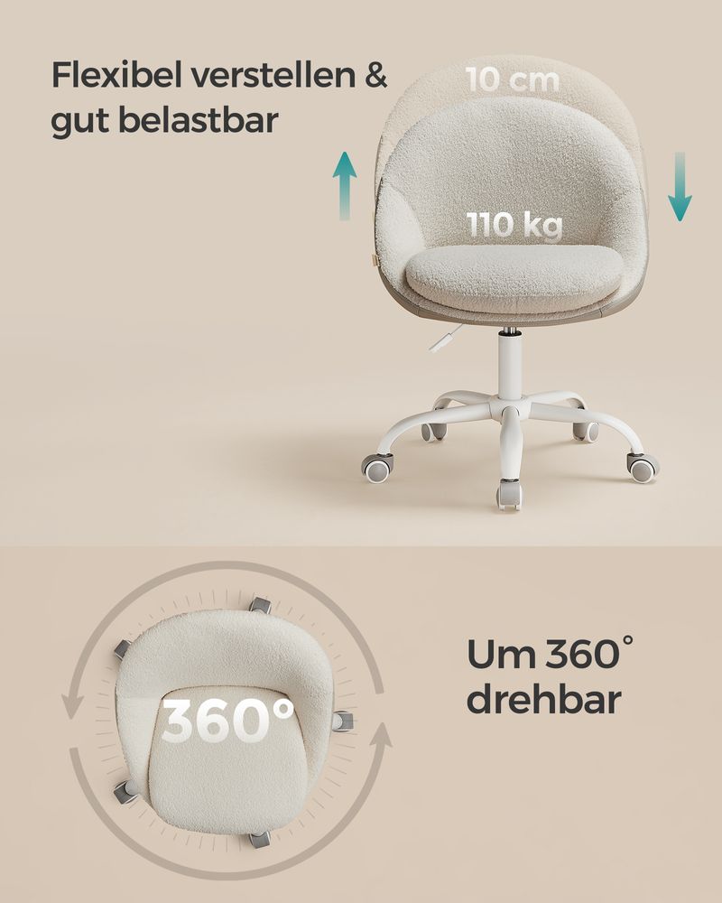- Με την κομψή εμφάνιση και τις απλές γεωμετρικές γραμμές, αυτή η περιστρεφόμενη καρέκλα θα προσθέσει μια μοναδική γοητεία στο δωμάτιό σας. Μπορείτε να το χρησιμοποιήσετε για εργασία, μελέτη ή εφαρμογή μακιγιάζ