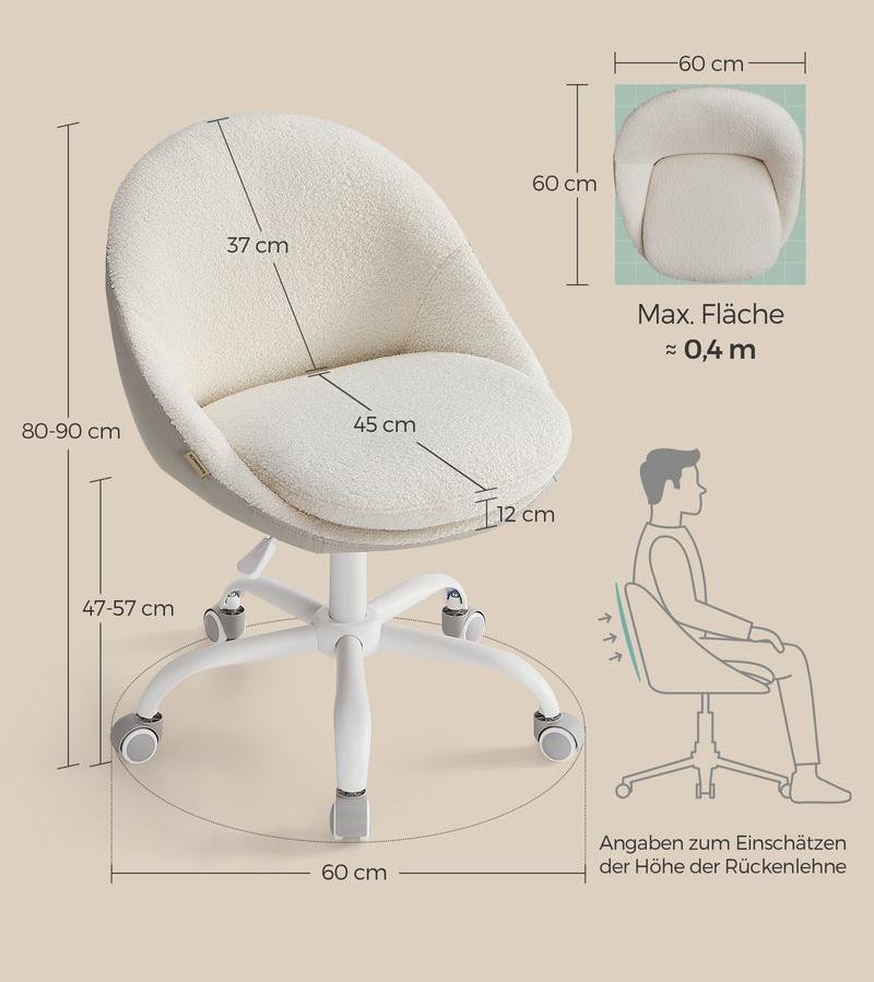 - Αυτή η συμπαγής καρέκλα γραφείου περιστρεφόμενη 360° (60 x 60 cm) ρυθμίζεται καθ' ύψος κατά 10 cm και δεν διαθέτει υποβραχιόνια. Όταν δεν τη χρησιμοποιείτε, μπορείτε να σύρετε την καρέκλα κάτω από το γραφείο για εξοικονόμηση χώρου