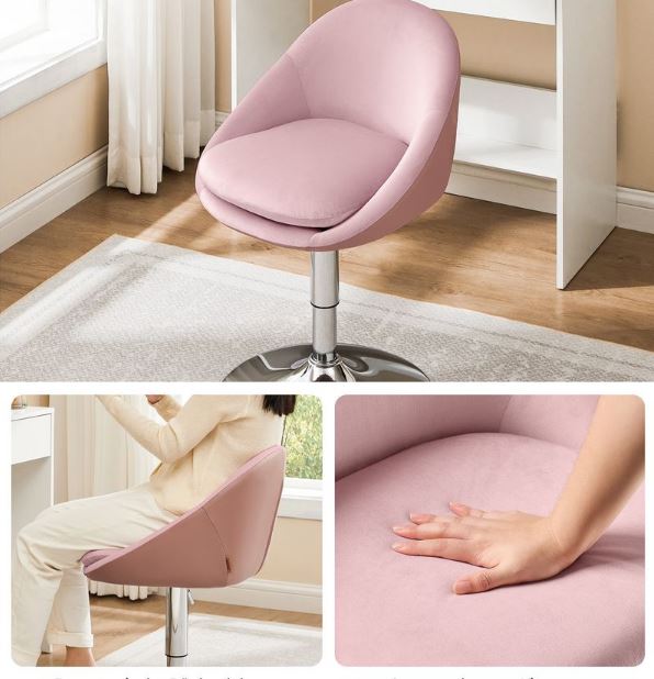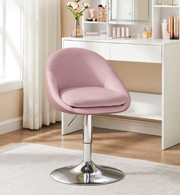 Αυτή η καρέκλα μακιγιάζ είναι ρυθμιζόμενη σε ύψος και περιστρέφεται 360°, ώστε να μπορείτε να την προσαρμόσετε όπως χρειάζεται. Το αφαιρούμενο κάλυμμα μαξιλαριού διευκολύνει τον καθαρισμό. Μπορεί να πλυθεί στο χέρι, αλλά όχι στο πλυντήριο.