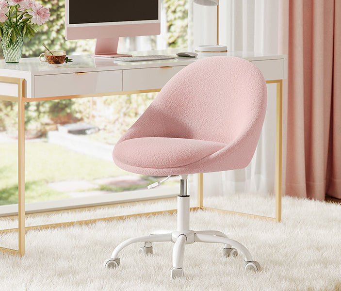 Καρέκλα Γραφείου Ροζ Μπουκλέ Άνετη Καρέκλα Μπουντουάρ Εξοικονόμησης Χώρου Περιστρεφόμενη Ρυθμιζόμενου Ύψους OB-G020R03