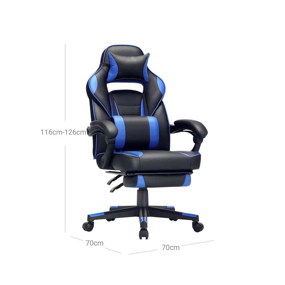 Καρέκλες Γραφείου Καρέκλα Υπολογιστή Gaming με Προσκέφαλο και Υποπόδιο Μαύρη Μπλέ OB-G073B04