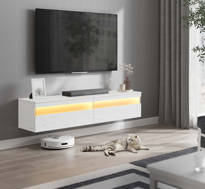 Κρεμαστό Έπιπλο Τηλεόρασης Επιτοίχιο Ντουλάπι 147 εκ και 180 εκ με LED Φωτισμό Πολύπριζο και USB Θύρες Ράφι Πολυμέσων Μαύρο και Λευκό LT-V133B02