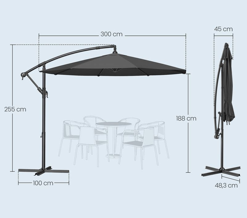Μεγάλη Ομπρέλα Μπαλκονιού Κήπου 300εκ Διάμετρος Με Μανιβέλα Αδιάβροχη Προστασία απο Υπεριώδη Ακτινοβολία GP-UB35116G01