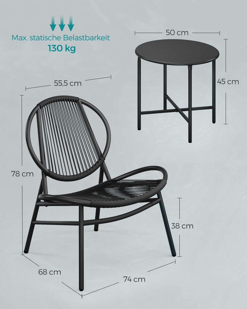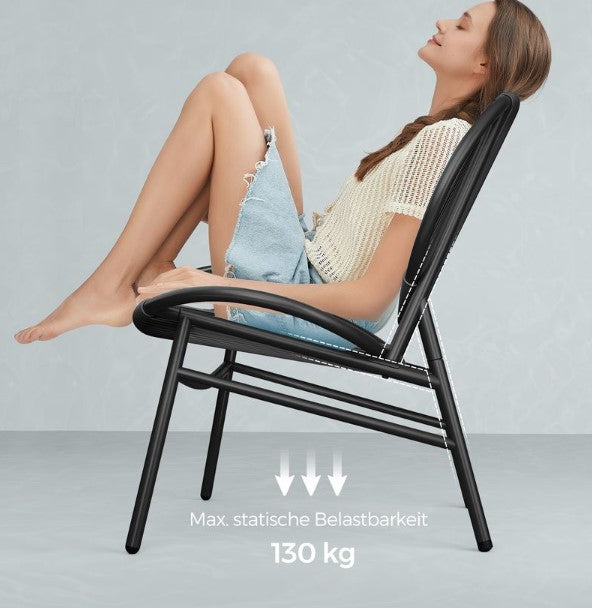 Αυτό το σετ καρέκλας εξωτερικού χώρου με εργονομική γωνία πλάτης 118° και κάθισμα πλάτους 74 cm είναι η προσωπική σας όαση άνεσης. Καθίστε αναπαυτικά, σταυρώστε τα πόδια σας και ξεχάστε το άγχος!