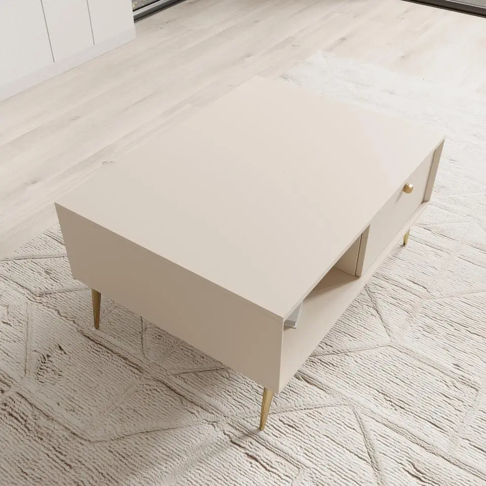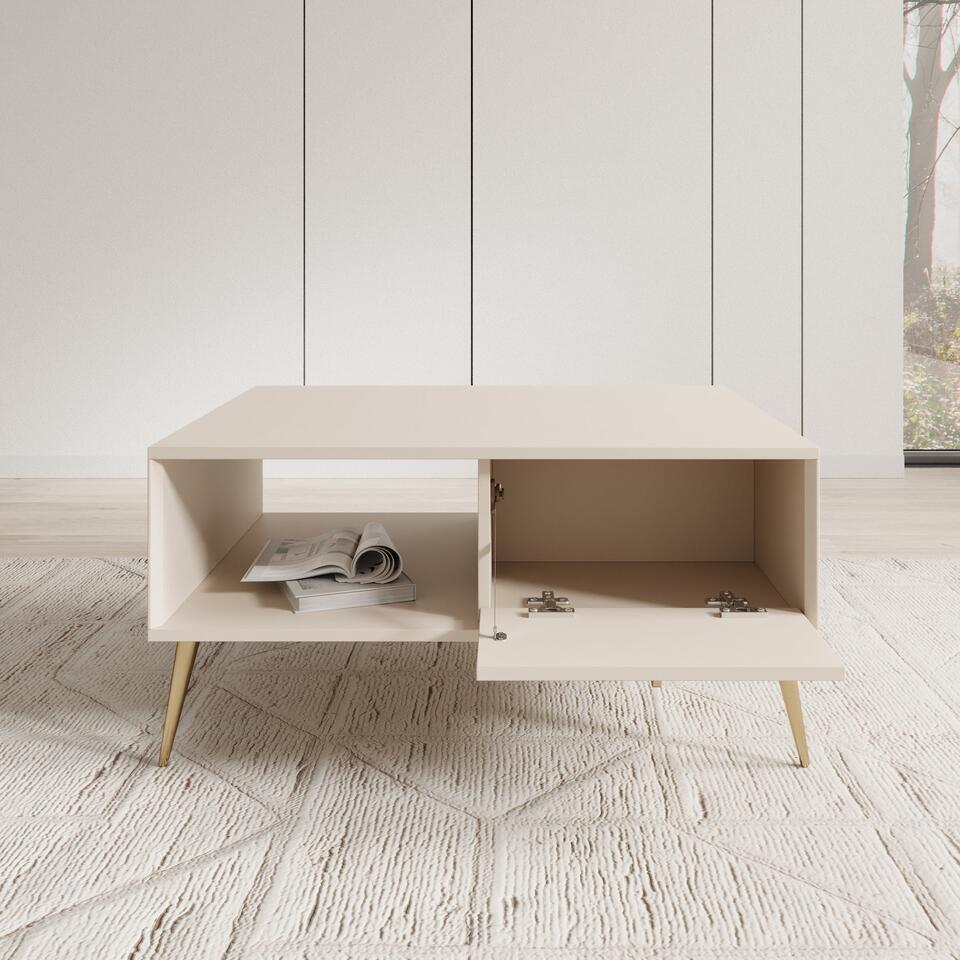 Μοντέρνο Τραπεζάκι Σαλονιού Μπεζ με Χρυσά Πόδια Τραπεζάκι Καθιστικού με Ντουλάπι 93764