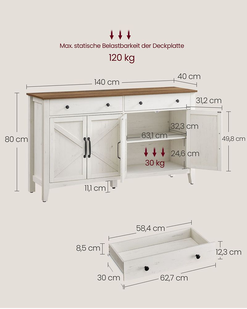 Μπουφές με Συρτάρι Κονσόλα Ντουλάπι Λευκό Παλαιωμένο Κουζίνας Μπάνιου Σαλονιού BB-K341W01