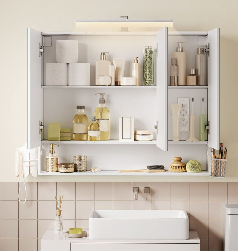 Το επάνω μέρος του ντουλαπιού του καθρέφτη είναι εξοπλισμένο με μια ελαφριά μπάρα που σας διευκολύνει να βλέπετε τον εαυτό σας στον καθρέφτη, ώστε να μπορείτε να ολοκληρώσετε εύκολα την καθημερινή περιποίηση του δέρματος και το μακιγιάζ σας.