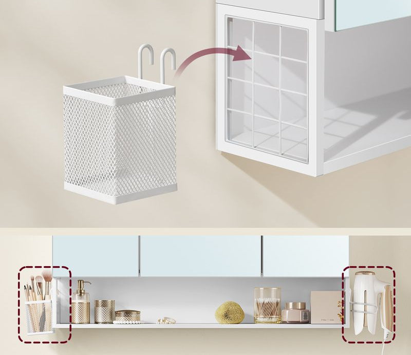 Η μία πλευρά είναι εξοπλισμένη με ένα μικρό κρεμαστό καλάθι, το οποίο είναι βολικό για τα μικροαντικείμενά σας και υπάρχει μια θήκη για στεγνωτήρα μαλλιών στην άλλη πλευρά, διευκολύνοντας τη χρήση του σεσουάρ.