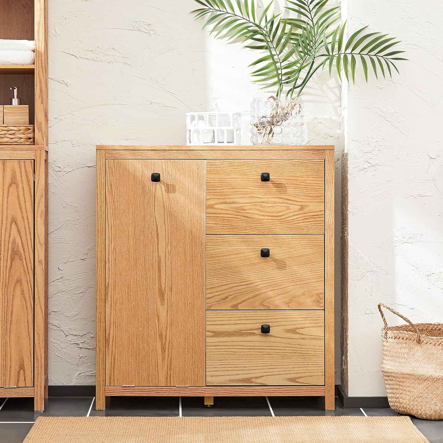 Ντουλάπι Μπάνιου με καλάθι για άπλυτα σακούλα και Συρτάρια 80 x 90 x 35 εκ Φυσικό Χρώμα Ξύλου B0-C993ZHXN