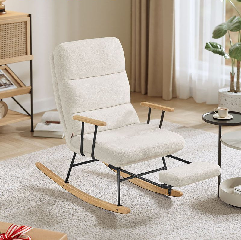 Χάρη στον απλό σχεδιασμό και το λευκό χρώμα, αυτή η μεγάλη κουνιστή πολυθρόνα μπορεί εύκολα να ενσωματωθεί στο σπίτι σας και να ταιριάζει τέλεια στο υπνοδωμάτιο, στο σαλόνι ή στο γραφείο.
