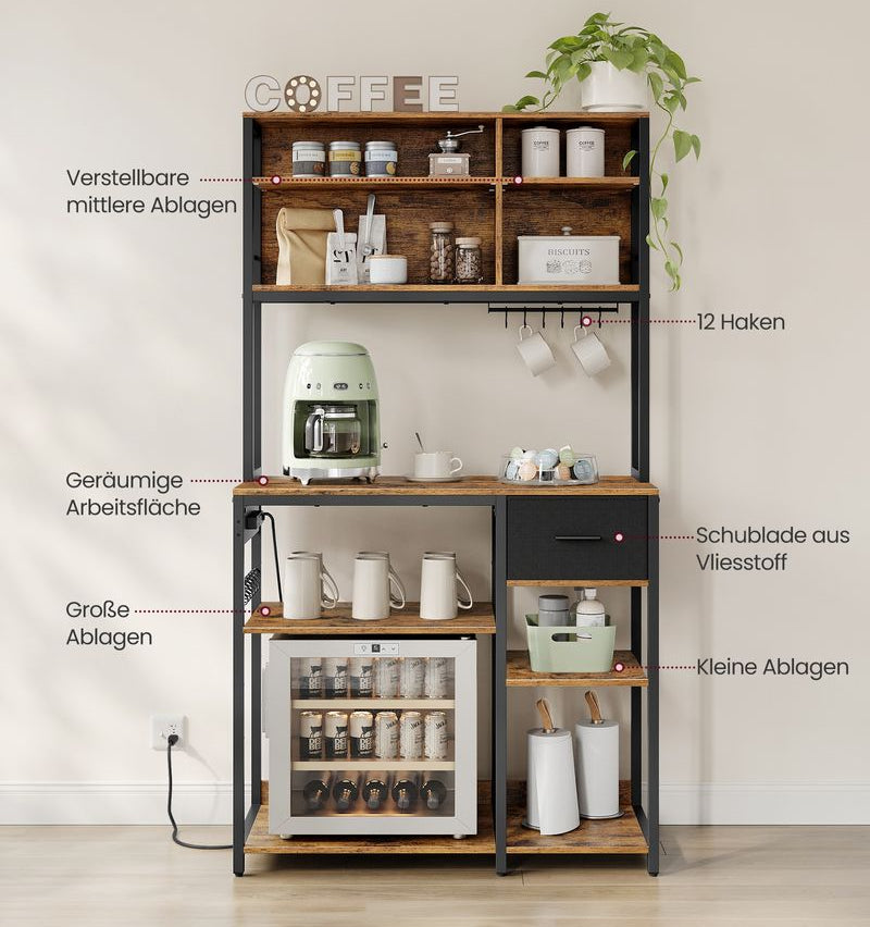 Αυτό το ράφι αποθήκευσης μπορεί επίσης να χρησιμοποιηθεί ως καφέ μπαρ, ράφι μικροκυμάτων ή ράφι κουζίνας. Οι δυνατότητες είναι απεριόριστες – αφήστε τη δημιουργικότητά σας να ξεφύγει!