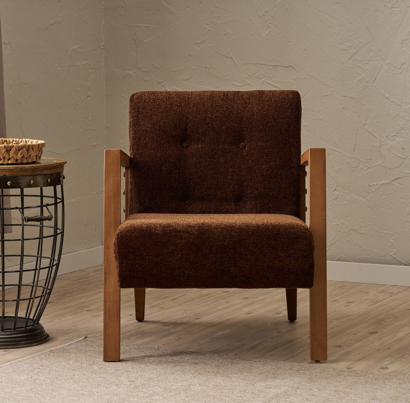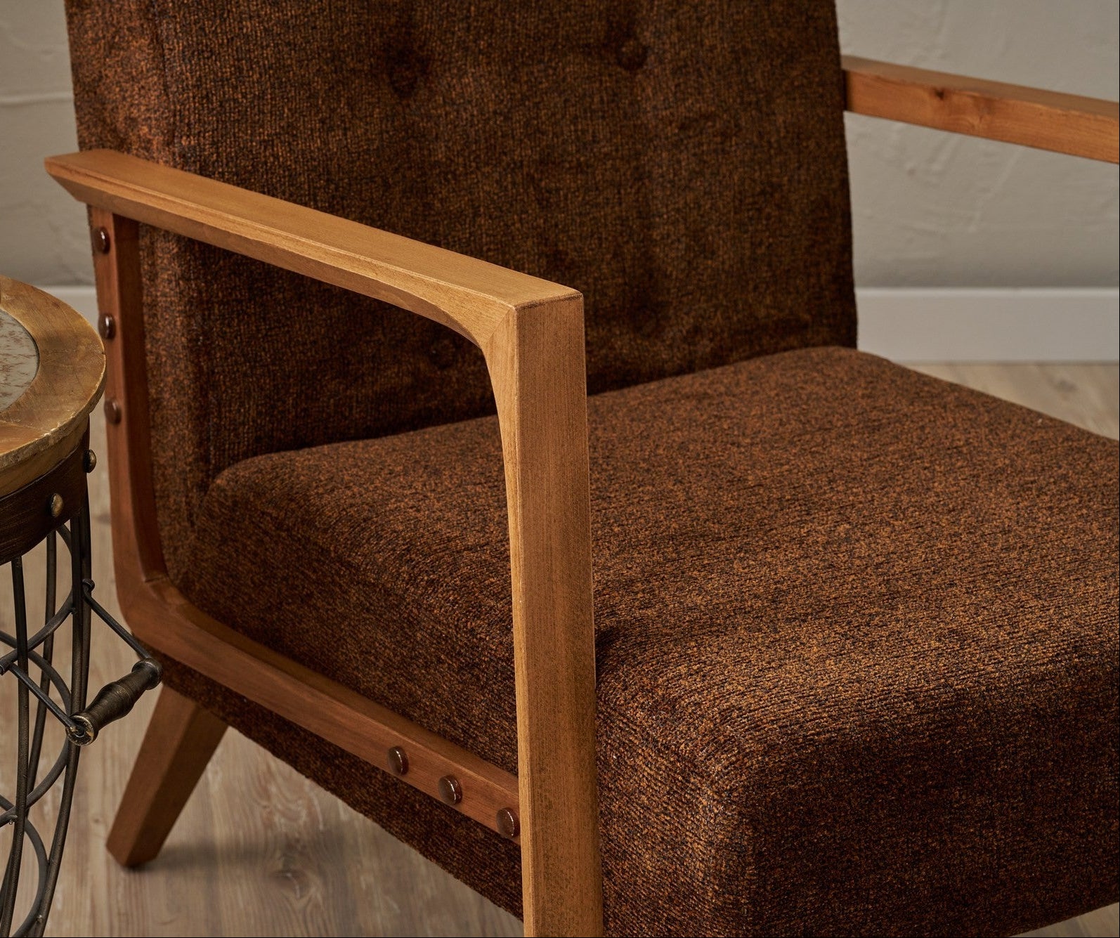 Ρουστίκ Πολυθρόνα Καφέ Υφασμάτινη Σενίλ Σκελετός Μασίφ Ξύλο Οξιά 825BLC2924