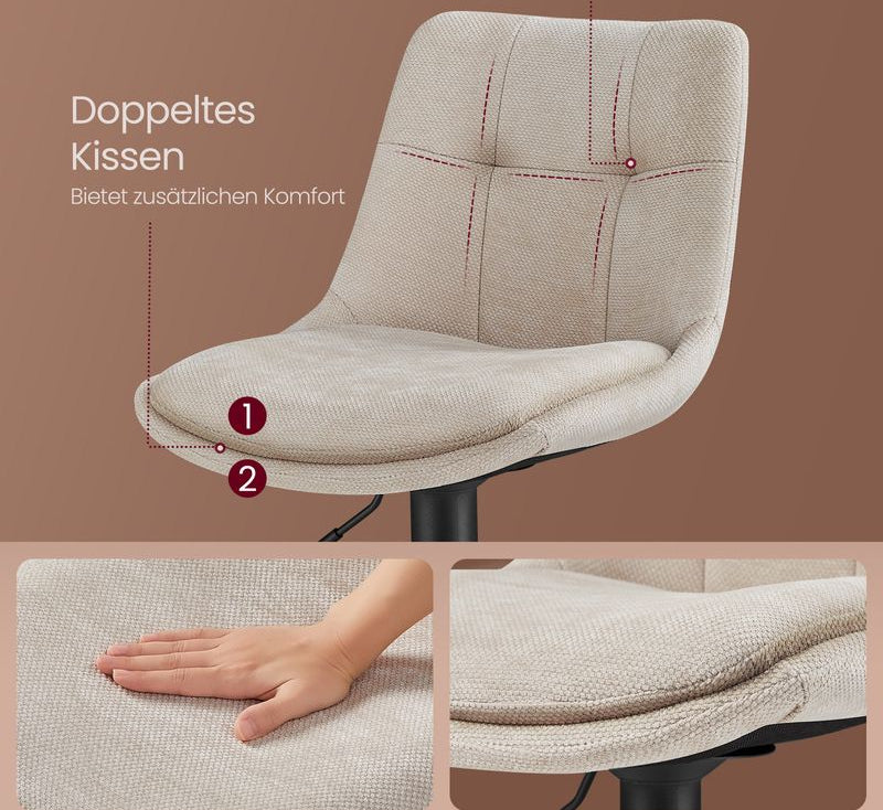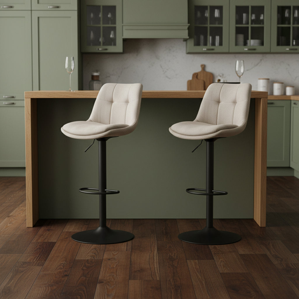 Αυτό το σκαμπό κουζίνας ρυθμίζεται σε ύψος μεταξύ 63 και 84 cm και μπορεί να περιστραφεί 360°, ώστε να μπορείτε να υιοθετήσετε την πιο άνετη θέση καθίσματος και να απολαύσετε ένα υψηλό επίπεδο άνεσης στο κάθισμα