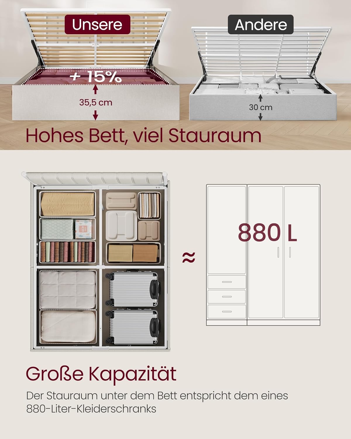 Άφθονος αποθηκευτικός χώρος: Ο αποθηκευτικός χώρος κάτω από το κρεβάτι έχει ύψος 31,7 cm και προσφέρει αρκετό χώρο για μια βαλίτσα μεσαίου μεγέθους.