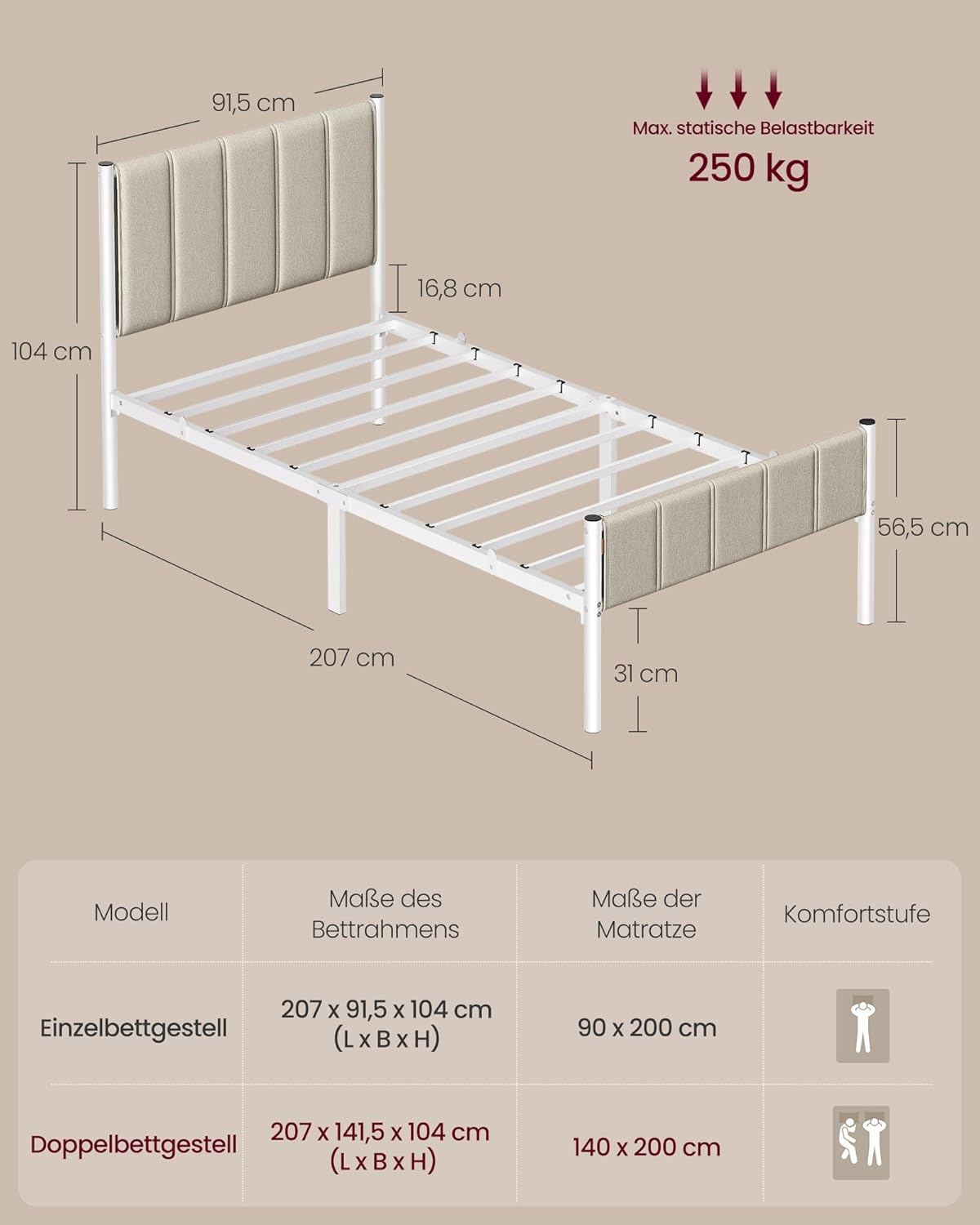 Προσεγμένο χαρακτηριστικό ασφαλείας: Αυτό το πλαίσιο μονού κρεβατιού είναι κατασκευασμένο με στρογγυλεμένες άκρες στους χαλύβδινους σωλήνες, προστατεύοντας από τυχαία χτυπήματα.