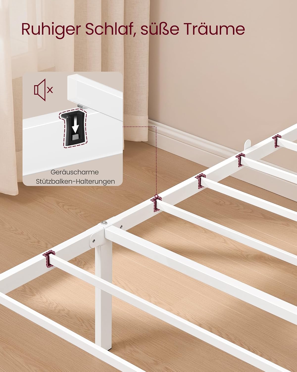 Το στρώμα σας παραμένει στη θέση του: Το υποπόδιο και τα μεταλλικά στοπ αυτού του μεταλλικού πλαισίου κρεβατιού συνεργάζονται για να αποτρέψουν οποιαδήποτε κίνηση του στρώματος, εξασφαλίζοντας έναν ανενόχλητο ύπνο.