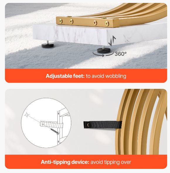 Το στενό τραπεζάκι κονσόλας μας είναι κατασκευασμένο από χοντρό ξύλο MDF και ένα στιβαρό μεταλλικό πλαίσιο, που αντέχει έως και 49,9 κιλά. Περιλαμβάνει 4 ρυθμιζόμενα πόδια για να εξασφαλίζει σταθερότητα σε ανώμαλα δάπεδα και να αποτρέπει ζημιές στο δάπεδό σας. Η συσκευή αντι-ανατροπής εξασφαλίζει πρόσθετη σταθερότητα και ασφάλεια.