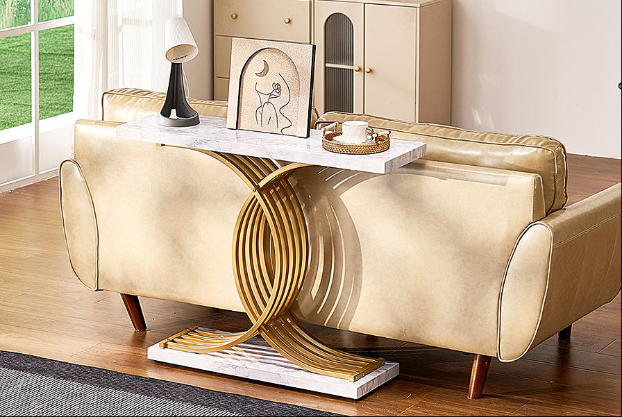 Στενή Κονσόλα Εισόδου Μοντέρνα Τραπέζι Μπουφές Λευκό με Χρυσό 100 x 30 x 81 εκ YJXXGZ-003
