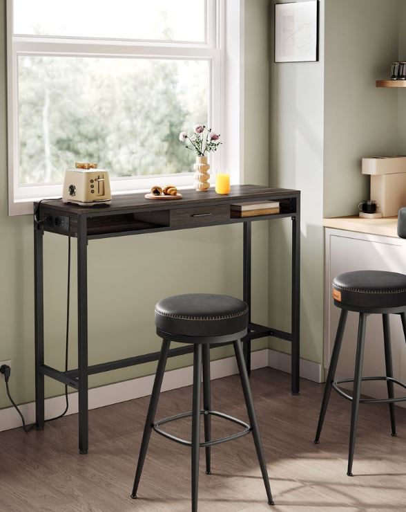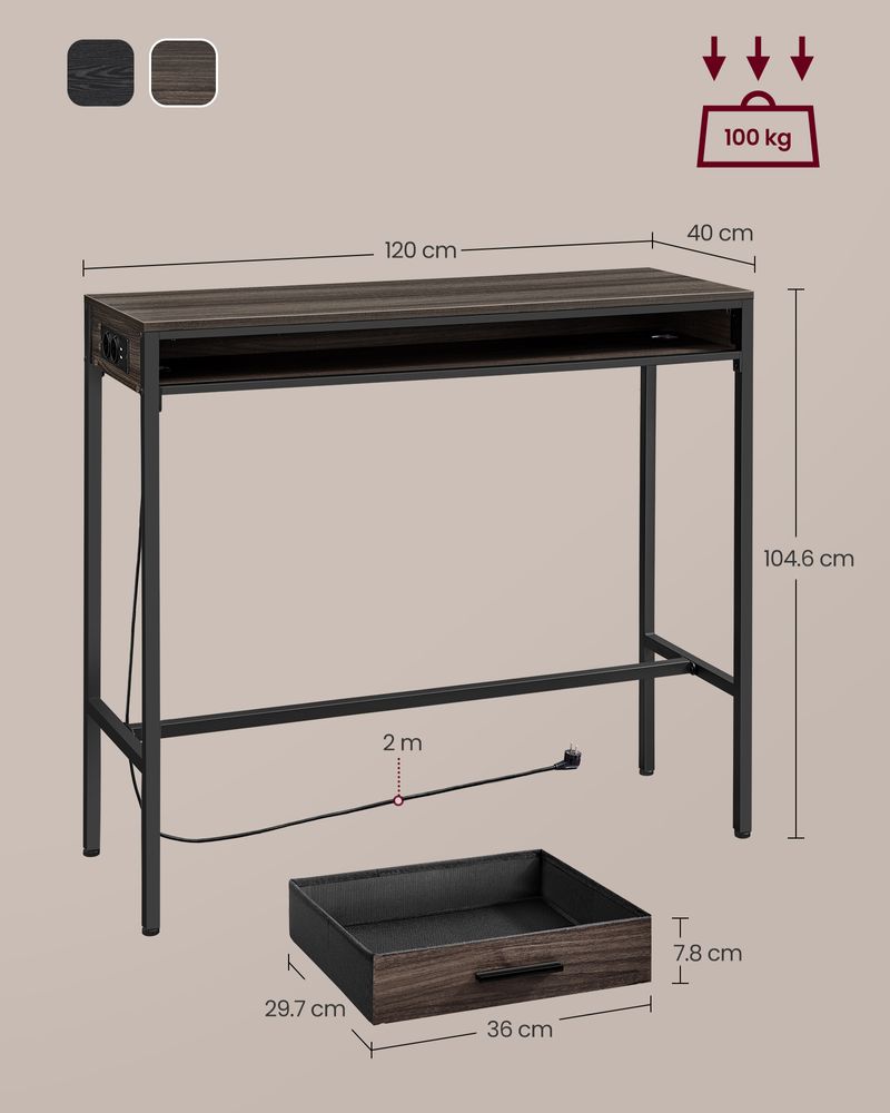 Στενό Τραπέζι Μπαρ με Συρτάρι με Πολύμπριζο Θύρες USB 40 x 120 x 104,6 εκ Καφέ και Μαύρο LB-T029K02