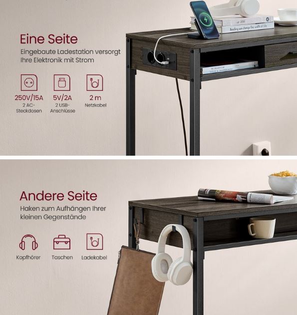 Με 2 πλαϊνούς γάντζους, αυτό το καφέ τραπέζι μπαρ προσφέρει ένα βολικό μέρος για να κρεμάτε αντικείμενα όπως καλώδια φόρτισης ή ακουστικά, κρατώντας τα απαραίτητα κοντά σας και κρατώντας το χώρο σας τακτοποιημένο.
