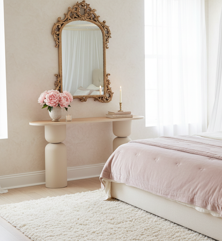 Εκλεπτυσμένη Αισθητική: Με κρεμ μεταλλικό πλαίσιο, αυτό το τραπέζι κονσόλας αποπνέει μια ατμόσφαιρα κομψότητας, συμπληρώνοντας αβίαστα διάφορα στυλ εσωτερικού χώρου, από κλασικό έως σύγχρονο.