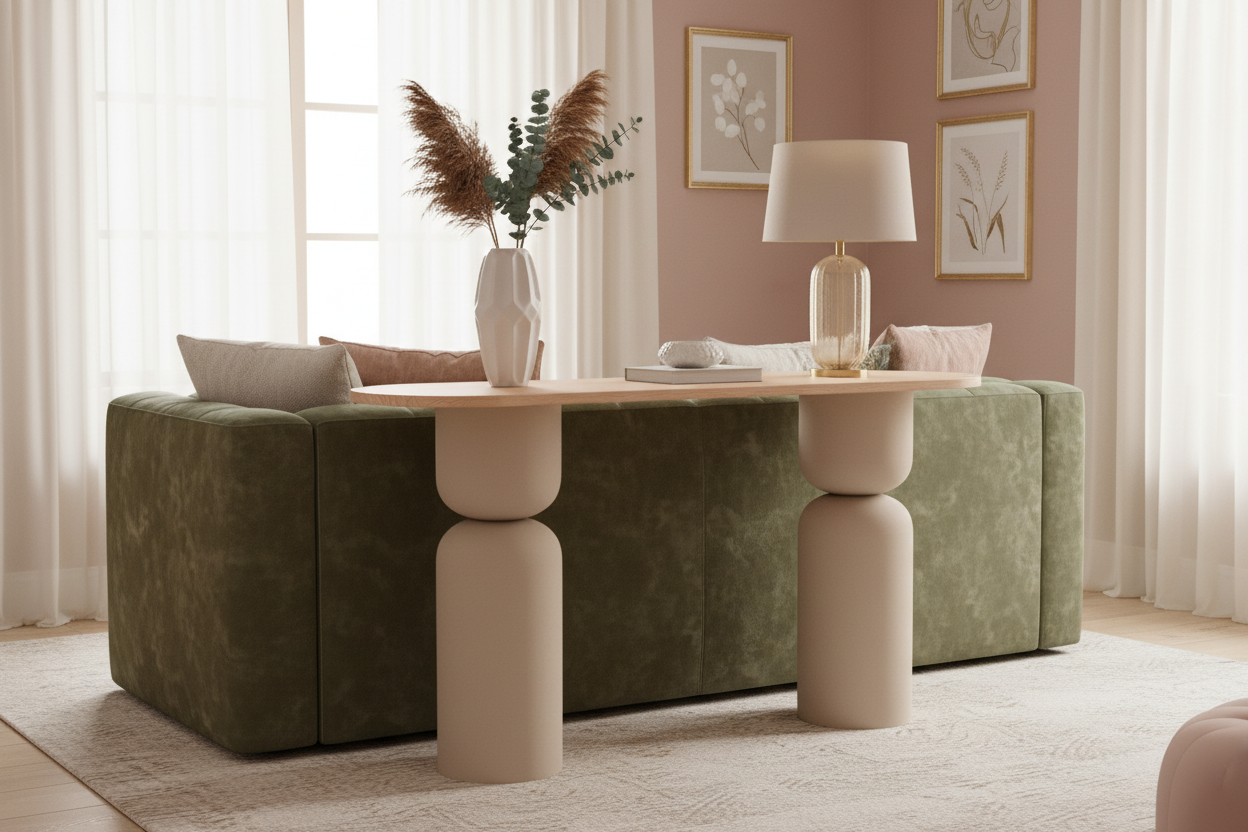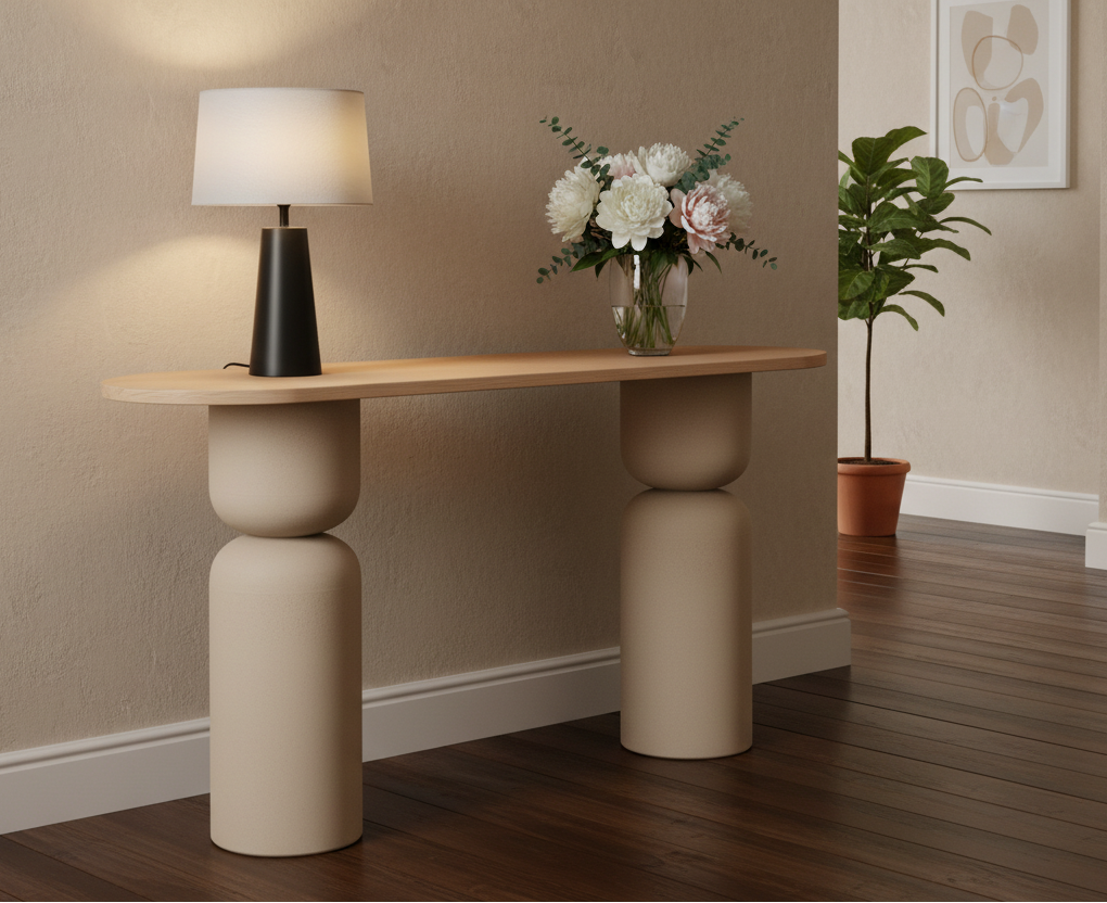 Παρουσιάζουμε το εκλεπτυσμένο μεταλλικό τραπέζι κονσόλας σε κρεμ χρώμα, σχεδιασμένο για να αναβαθμίσει άψογα την ατμόσφαιρα του χώρου σας, παρέχοντας παράλληλα πρακτική λειτουργικότητα. Αυτό το εξαιρετικά κατασκευασμένο κομμάτι υπόσχεται έναν τέλειο συνδυασμό διαχρονικού σχεδιασμού και μοντέρνας κομψότητας, ιδανικό για να διακοσμήσει το φουαγιέ, το διάδρομο ή το σαλόνι σας.