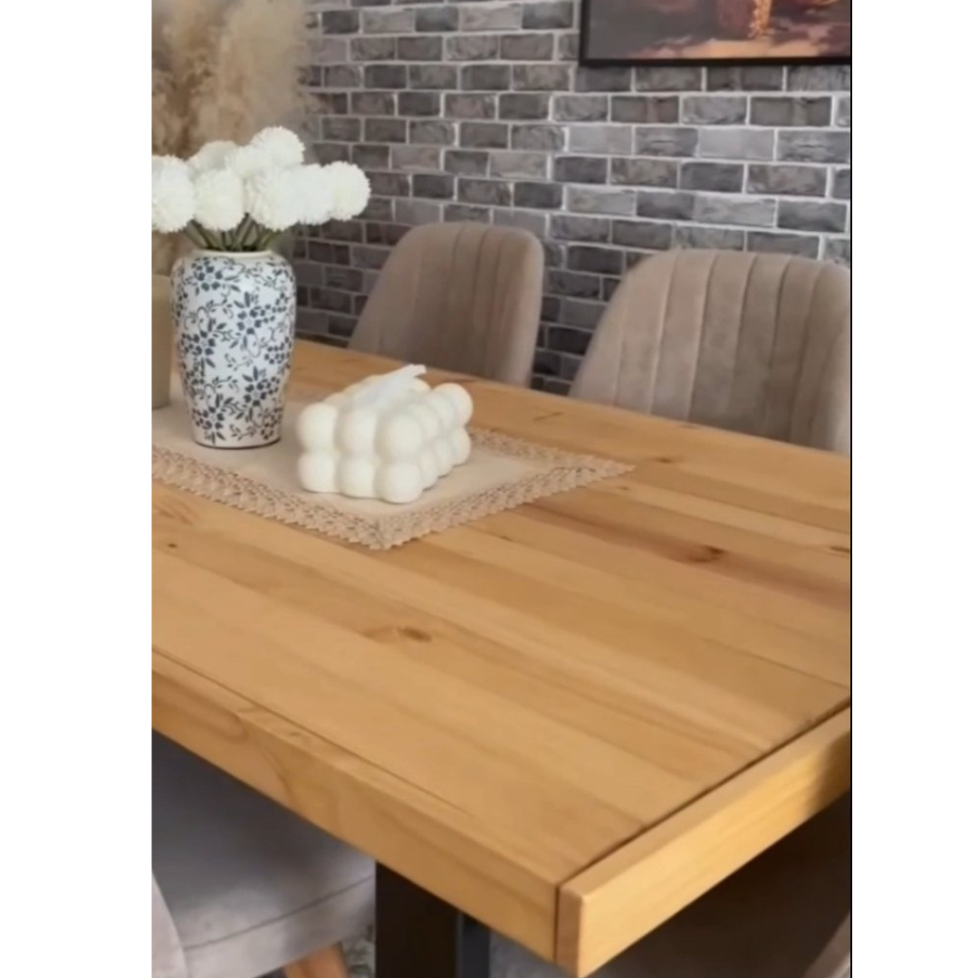 Αναβαθμίστε το χώρο σας με το τραπέζι τραπεζαρίας από μασίφ ξύλο πεύκου, σχεδιασμένο για να συνδυάζει αυθεντική γοητεία και πρακτικότητα.